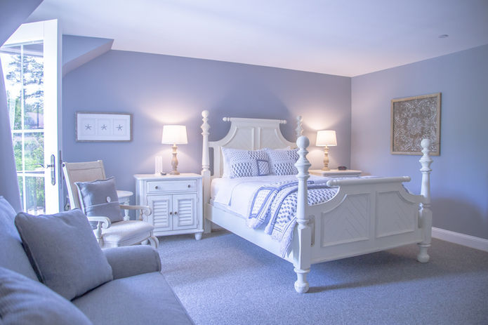 This sea-side inspired room includes one king bed, private bath, a queen pullout sofa, and a private balcony with a limited water view.